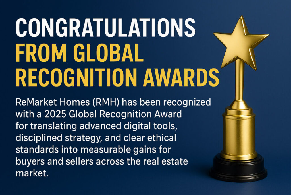 ReMarket Homes (RMH) has been recognized with a 2025 Global Recognition Award for translating advanced digital tools, disciplined strategy, and clear ethical standards into measurable gains for buyers and sellers across the real estate market. The recognition reflects how RMH’s leadership, service, and innovation scores sit consistently at the top of the evaluation scale, and the organization […]